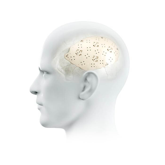 Ayrıca dura ve yumuşak dokunun sabitlenmesi için özel delikler de önceden hazırlanmıştır. Böylece ameliyat sırasında ek delik açılması gerekmez.